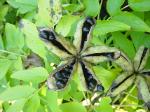 Yew like evergreen foliage with larger needles – deer ignore it! In October purple 1 ½” fruit with largish edible seed – fruit tastes like a plum