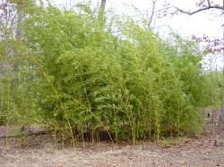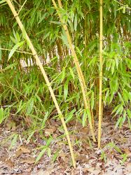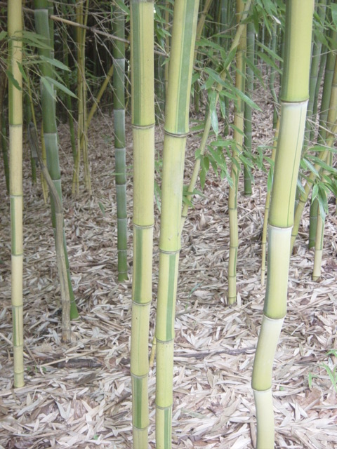 Sun/bright shade, to 26 feet, USDA Zones 6b-9. Culms have a celery-like green ribbing with yellow valleys.